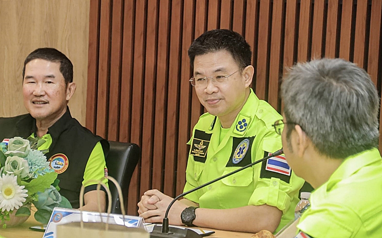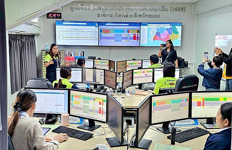 เมื่อวันที่ 9 กันยายน 2568 สถาบันการแพทย์ฉุกเฉินแห่งชาติ (สพฉ.) จัดกิจกรรม “สัมผัสประสบการณ์ เบื้องหลังการปฏิบัติการฉุกเฉิน ในพื้นที่ อีอีซี” โดยเชิญผู้บริหารและผู้แทนหน่วยงานภาครัฐและเอกชนด้านการท่องเที่ยวและการลงทุน และสื่อมวลชน เข้าร่วมกิจกรรมเยี่ยมชมการดำเนินงานของระบบการแพทย์ฉุกเฉินในพื้นที่ อีอีซี อันประกอบด้วย การดำเนินงานของศูนย์รับแจ้งเหตุและจ่ายงานการแพทย์ฉุกเฉิน (1669) องค์การบริหารส่วนจังหวัดระยอง บทบาทการสนับสนุนการลำเลียงผู้ป่วยฉุกเฉินของทัพเรือภาคที่ 1 และศูนย์อำนวยการรักษาผลประโยชน์ของชาติทางทะเลภาค 1 (ศรชล.ภาค 1) และบทบาทการเป็นหน่วยปฏิบัติการแพทย์เฉพาะทางสาขาฉุกเฉินการแพทย์ทางอากาศในพื้นที่ อีอีซี ของโรงพยาบาลชลบุรี พร้อมการจำลองสถานการณ์การลำเลียงผู้ป่วยฉุกเฉินทางบกและทางอากาศ ณ กองการบินทหารเรือ ท่าอากาศยานนานาชาติอู่ตะเภา จังหวัดระยอง และปิดท้ายด้วยกิจกรรม “CPR on the Sea” อบรมการฟื้นคืนชีพขั้นพื้นฐานให้แก่ผู้ประกอบการร่มเตียง นวดไทย เรือประมง ฯลฯ จำนวน 100 คน ด้วยความร่วมมือของเมืองพัทยา โรงพยาบาลกรุงเทพพัทยา และมูลนิธิสว่างมูลนิธิสว่างบริบูรณ์ พัทยา ณ แพลากร่ม ท่าเรือแหลมบาลีฮาย พัทยา