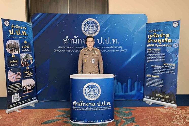นายหมวดตรี ดร.สันติ พิมพ์ใจใส ตำแหน่งนักบริหารงานสืบสวนสอบสวน ส่วนงานสืบสวนสอบสวน สำนักจเร กอ.รมน.คณะทำงานขับเคลื่อนศูนย์ปฏิบัติการต่อต้านการทุจริต เข้าร่วมรับรางวัลเครือข่ายต้นแบบ ในการป้องกันและเฝ้าระวังการทุจริต ประจำปี 2568