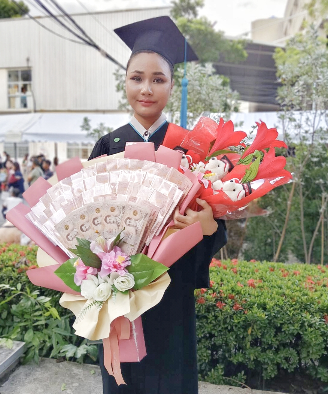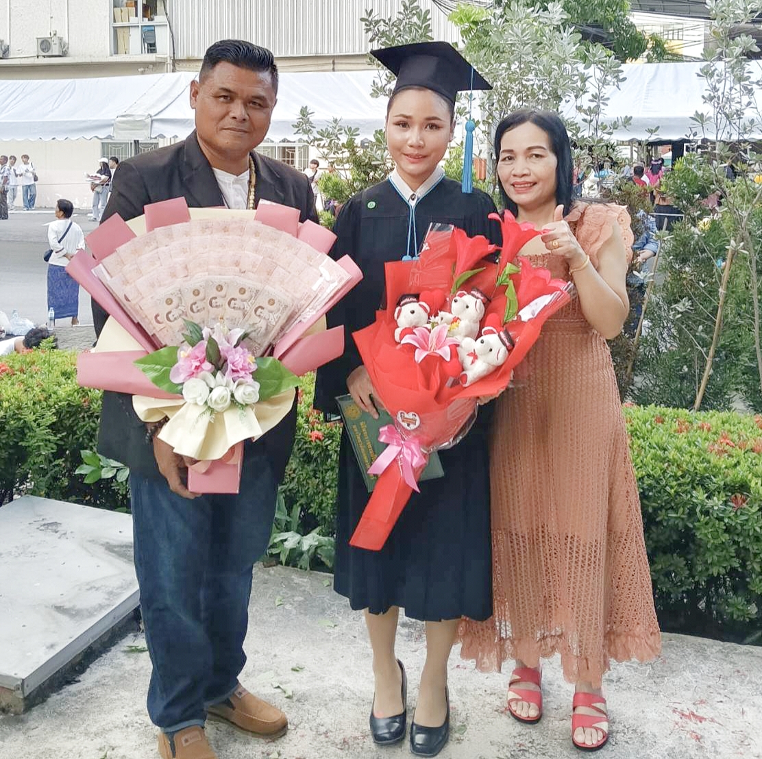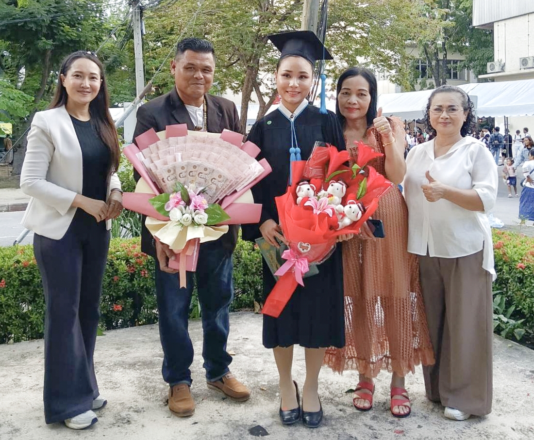 แสดงความยินดีบัณฑิตใหม่ น้องภีม นัทรินทร์ ทองตุ๋ย ลูกสาวนักข่าวอาวุโส โดยคุณสุภาพร แพบัว ตัวแทน ประธาน"มูลนิธิเทพ ศรียันตรา"นำทัพ มอบกระเช้าดอกไม้