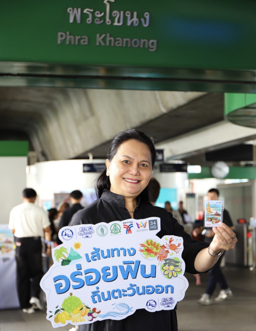 คุณกนกกิตติกา กฤตย์วุฒิกร ผู้อำนวยการภูมิภาคภาคตะวันออก การท่องเที่ยวแห่งประเทศไทย ร่วมกับพันธมิตร บริษัท กรุงเทพธนาคม จำกัด (วิสาหกิจกรุงเทพมหานคร) บริษัท ระบบขนส่งมวลชนกรุงเทพ จำกัด (มหาชน) หรือ รถไฟฟ้าบีทีเอส และ อมรินทร์ทีวี เอชดี ช่อง 34 เปิดตัวเส้นทางท่องเที่ยว เที่ยวง่าย กินอร่อย ใกล้กรุง ภายใต้โครงการ “เส้นทางอร่อยฟินถิ่นตะวันออก” ในรูปแบบ One Day Trip สามารถเดินทางด้วยรถไฟฟ้า BTS จากใจกลางกรุงเทพมหานคร กล่าวถึงโครงการเส้นทางท่องเที่ยว อร่อยฟินถิ่นตะวันออก ในครั้งนี้ว่า เพื่อส่งเสริมการเดินทางท่องเที่ยวใน 9 จังหวัด ได้แก่ สมุทรปราการ, ชลบุรี, ระยอง, จันทบุรี, ตราด, ฉะเชิงเทรา, นครนายก, ปราจีนบุรี และสระแก้ว