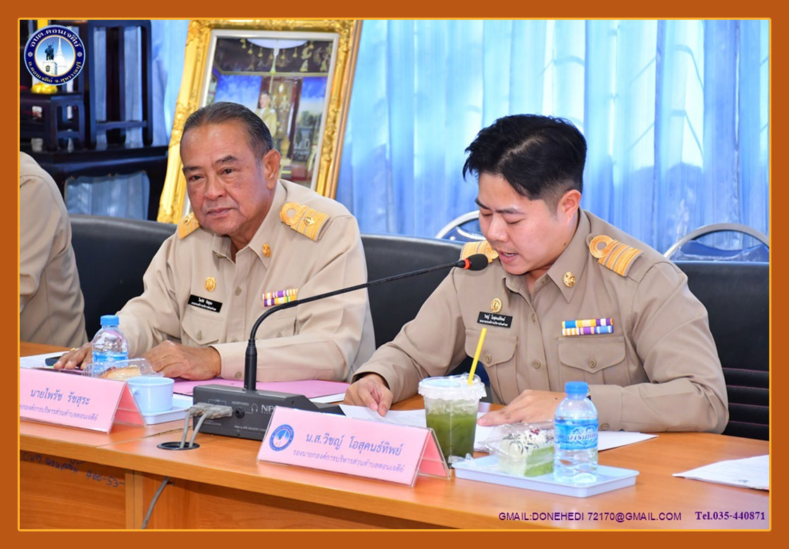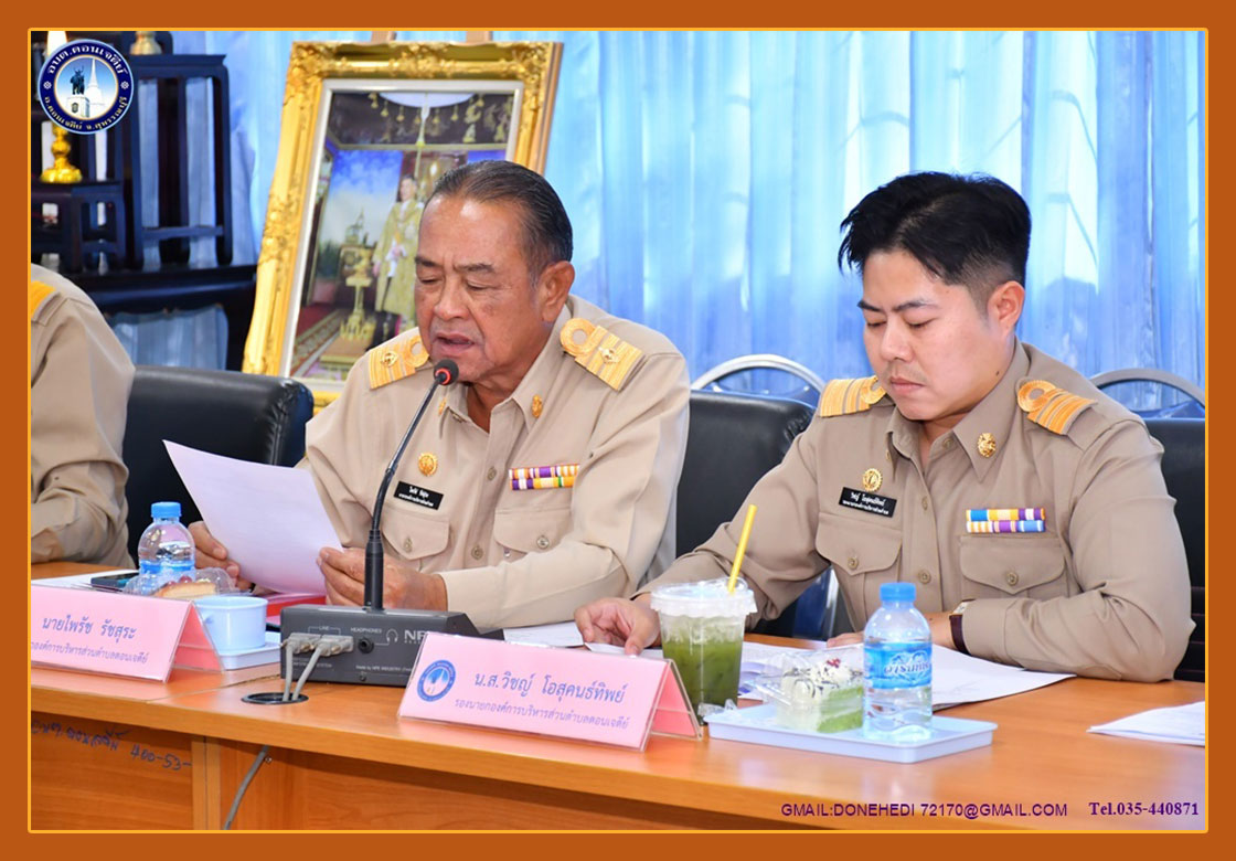 นายกหมู นายกองค์การบริหารส่วนตำบลดอนเจดีย์ พร้อมคณะผู้บริหาร แถลงนโยบายต่อสภาองค์การบริหารส่วนตำบลดอนเจดีย์