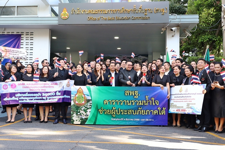 เมื่อวันที่ 4 ธันวาคม 2568 ศาสตราจารย์ ดร.นฤมล ภิญโญสินวัฒน์ รัฐมนตรีว่าการกระทรวงศึกษาธิการ (รมว.ศธ.) ได้รับมอบหมาย ให้นายพิเชฐ โพธิ์ภักดี เลขาธิการคณะกรรมการการศึกษาขั้นพื้นฐาน (เลขาธิการ กพฐ.) เป็นประธานในพิธีเปิดกิจกรรม “คาราวานช่วยเหลืออุทกภัยในพื้นที่ภาคใต้ ประจำปี พ.ศ. 2568” ในส่วนของสำนักงานคณะกรรมการ สกสค. ดร.พีระพันธ์ เหมะรัต เลขาธิการคณะกรรมการ สกสค. มอบ ดร.สุชาติ กลัดสุข นางสาวชนนิกานต์ สืบชนะ รองเลขาธิการคณะกรรมการ สกสค. นายภกร รงค์นพรัตน์ รองผู้อำนวยการองค์การค้าของ สกสค. พร้อมด้วยผู้บริหาร พนักงานเจ้าหน้าที่สำนักงานคณะกรรมการ สกสค. เข้าร่วม ณ สวนวันครู อาคาร สพฐ.1 กระทรวงศึกษาธิการ