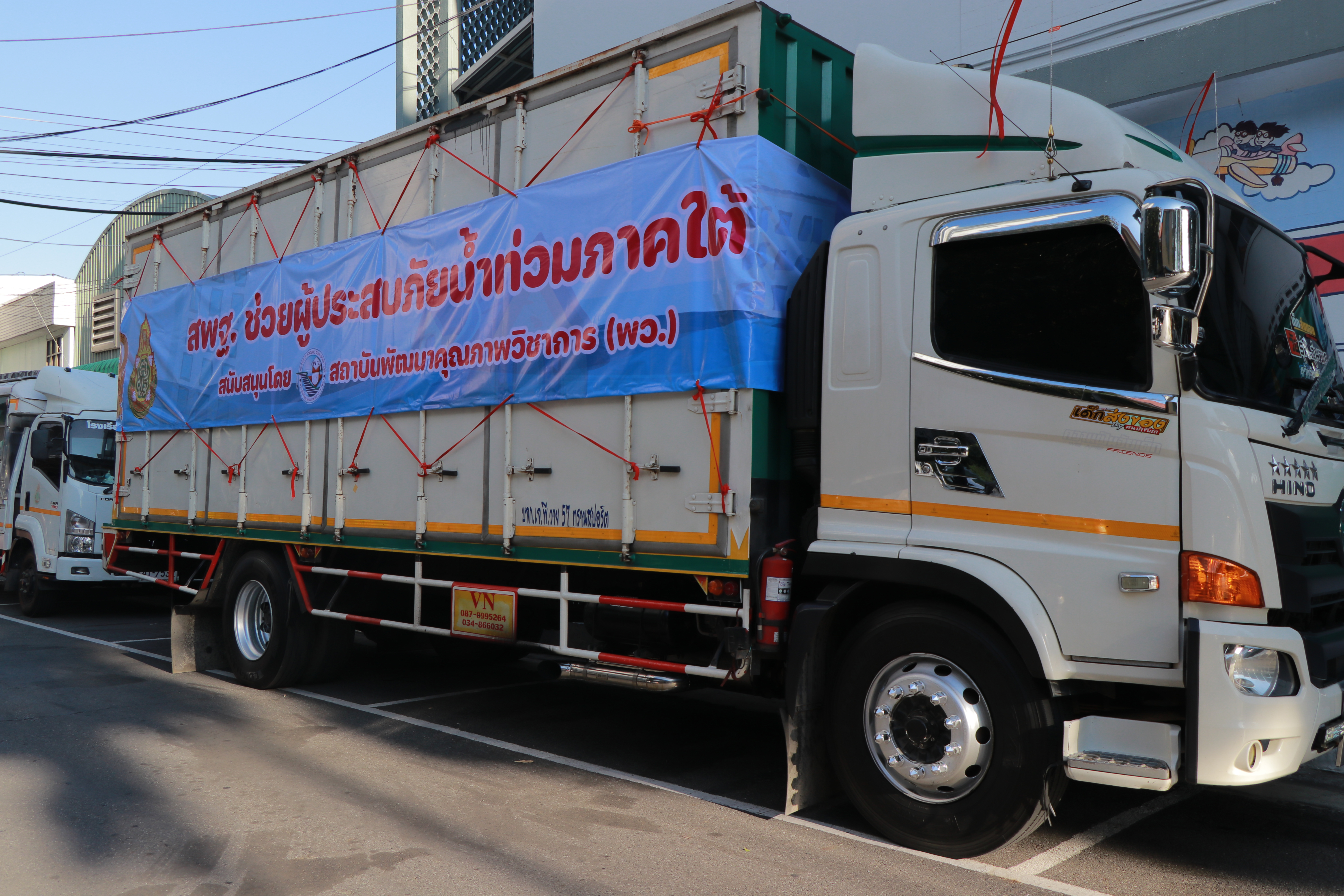 หนึ่งในกำลังสำคัญของภารกิจครั้งนี้คือ ดร.ศักดิ์สิน โรจน์สราญรมย์ ประธาน พว. ซึ่งประกาศสนับสนุน รถบรรทุกสำหรับขบวนคาราวาน เพื่อใช้ลำเลียงเครื่องอุปโภคบริโภค ชุดยังชีพ วัสดุฟื้นฟูสถานศึกษา และสิ่งของจำเป็นต่าง ๆ ลงสู่พื้นที่ประสบภัยใน 10 จังหวัดภาคใต้ ช่วยเพิ่มขีดความสามารถในการขนส่งและความรวดเร็วในการเข้าถึงโรงเรียนที่ได้รับผลกระทบจำนวนมาก