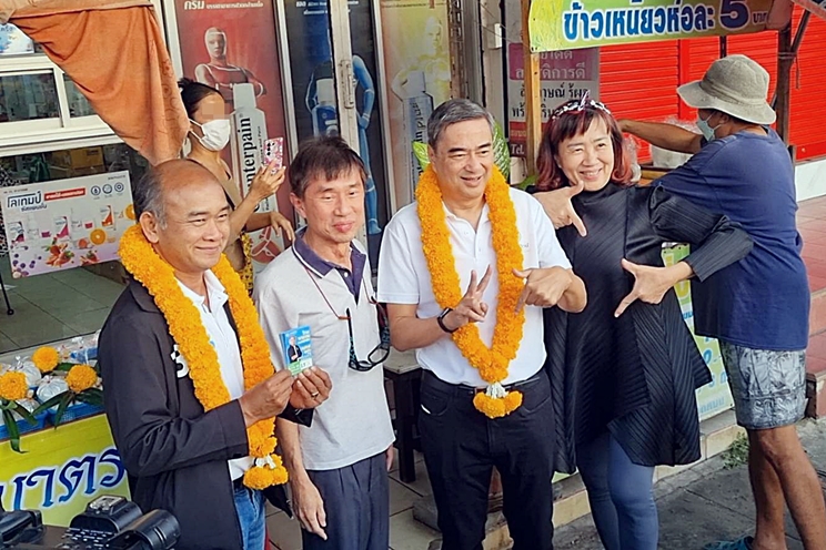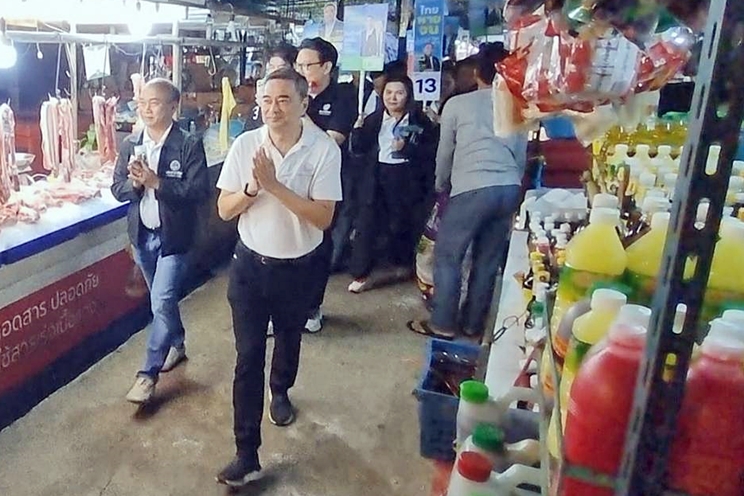 “อภิสิทธิ์–สกลธี” ลงพื้นที่ลาดกระบัง ช่วย “รัฐศักดิ์ สุขยิ่ง” หาเสียง พบประชาชนตลาดสดเกรียงไกร ชูนโยบายแก้เศรษฐกิจ–รื้อระบบประกันสังคม