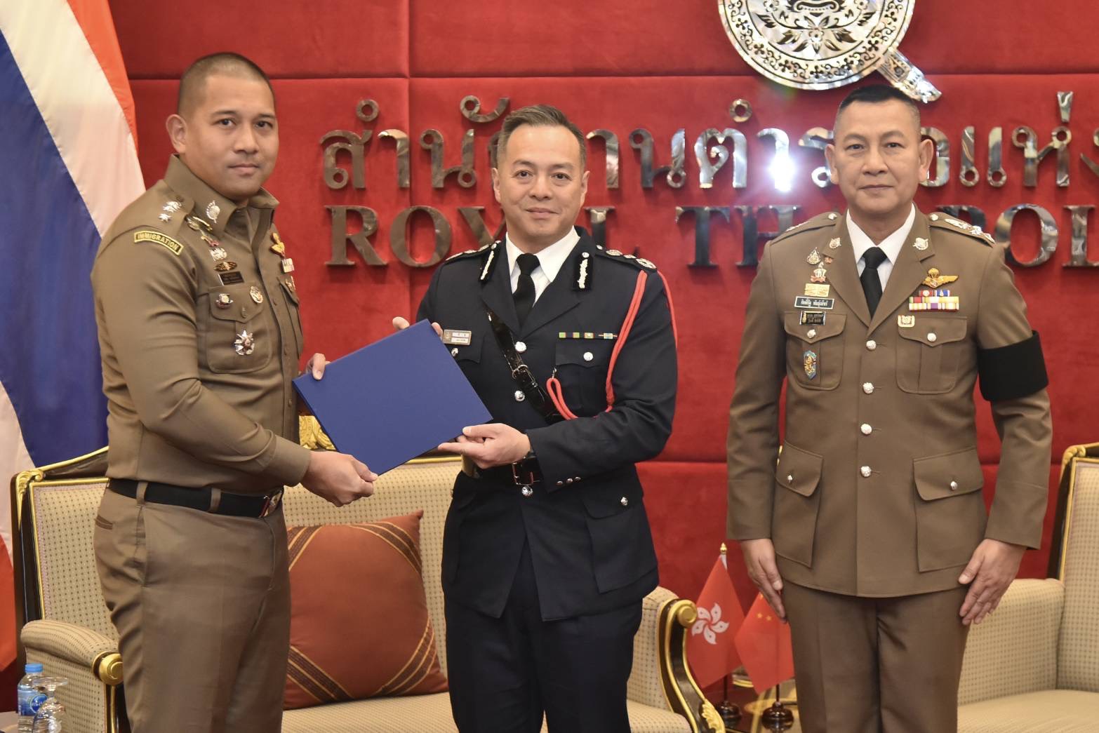 โอกาสนี้ ผบ.ตร.ฮ่องกง ได้กล่าวขอบคุณสำนักงานตำรวจแห่งชาติไทย ที่ให้ความร่วมมืออย่างเต็มที่ในการจับกุมคนร้ายชาวจีนก่อเหตุชิงทรัพย์ร้านแบรนด์เนมหรูในเขตปกครองพิเศษฮ่องกง เมื่อกลางปี พ.ศ.2568 ซึ่งหลบหนีเข้าประเทศไทย และถูก สำนักงานตรวจคนเข้าเมือง โดยกองบังคับการตรวจคนเข้าเมือง 2 (บก.ตม.2) สกัดจับได้อย่างรวดเร็ว ณ ท่าอากาศยานนานาชาติสุวรรณภูมิ ก่อนผลักดันส่งตัวกลับไปดำเนินคดีตามกระบวนการยุติธรรมของฮ่องกง