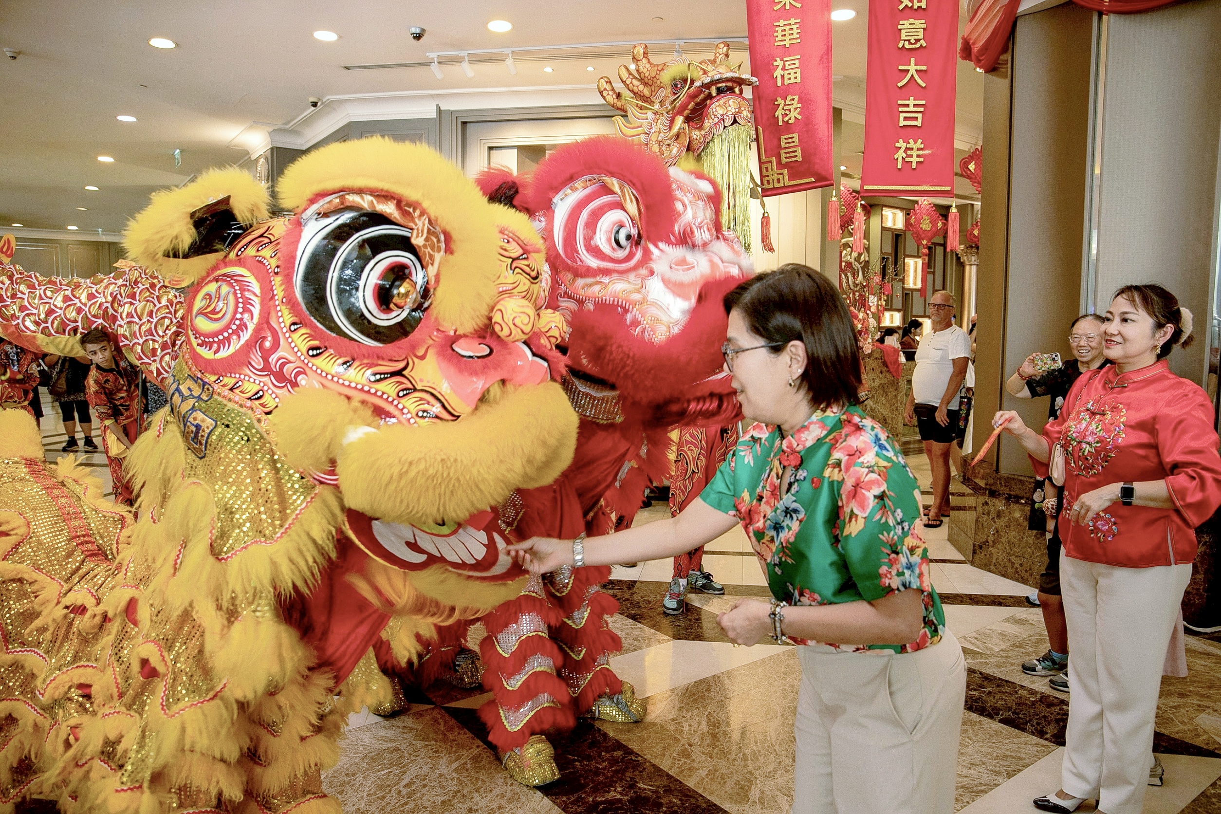 ไฮไลต์ของงานอยู่ที่การแสดงเชิดมังกรทองและเชิดสิงโต ซึ่งสร้างความตื่นตาตื่นใจและเรียกเสียงปรบมือจากแขกทั้งชาวไทยและชาวต่างชาติได้ตลอดการแสดง บรรยากาศเต็มไปด้วยสีสันแห่งความคึกคัก สนุกสนาน นอกจากนี้ทางโรงแรมฯ ยังได้จัดเตรียมของขวัญและของมงคลมอบแก่ลูกค้าของโรงแรมฯ เพื่อร่วมอวยพรให้ทุกท่านมีโชคลาภ และก้าวเข้าสู่ปีใหม่จีนด้วยความสุข ความมั่งคั่ง และความเจริญรุ่งเรืองตลอดปี