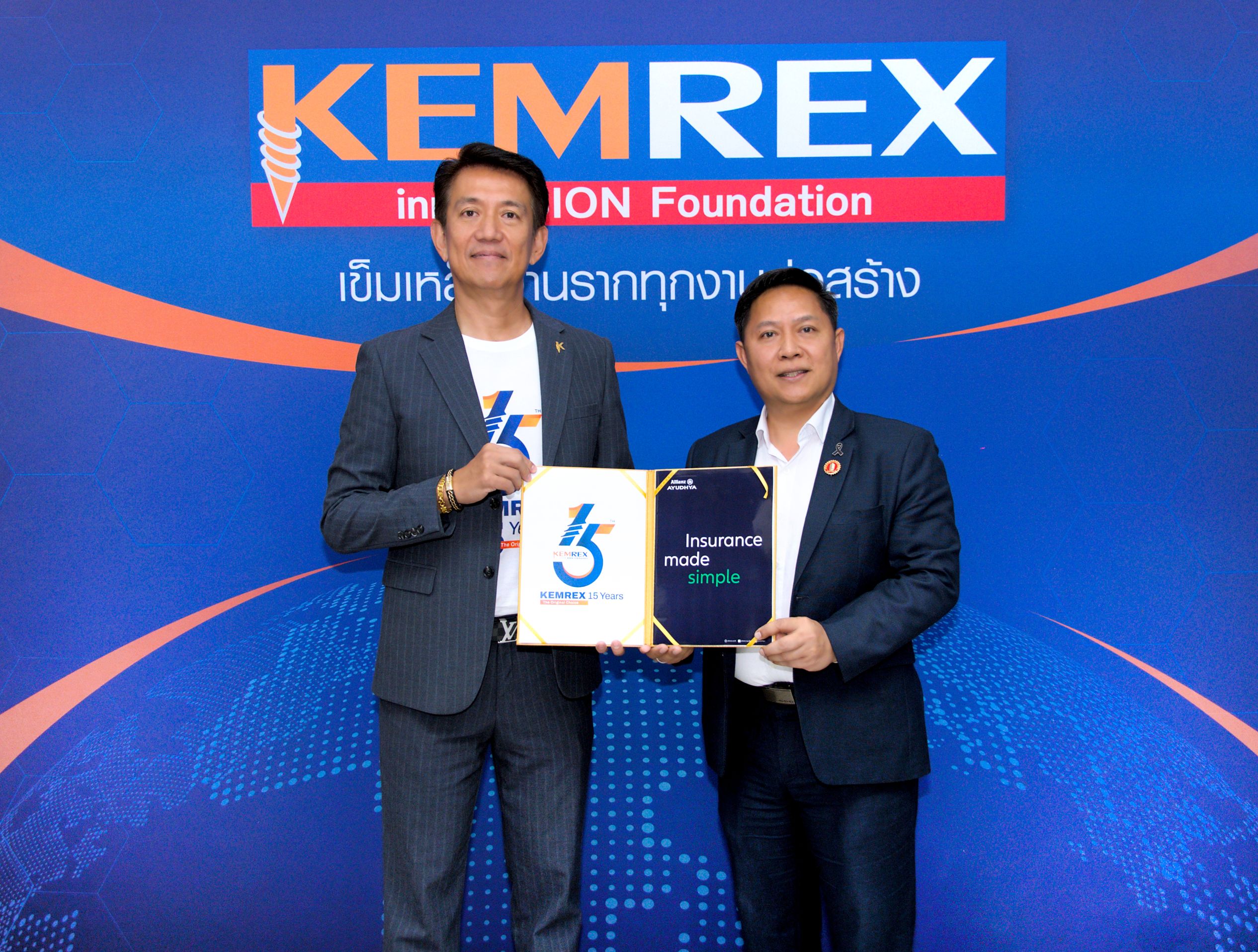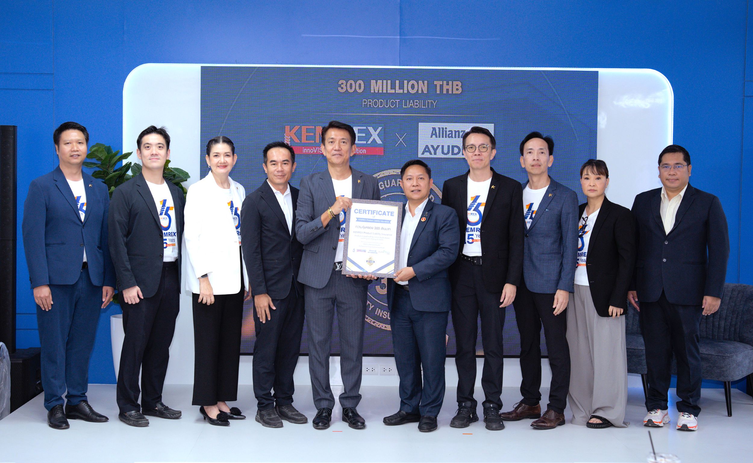 การรับมอบกรมธรรม์ในครั้งนี้ได้รับเกียรติจาก คุณนนท์วริศ สมฤทธิ์ฐิติกุล ตัวแทนจาก Allianz Ayudhya เป็นผู้ส่งมอบ โดยการยกระดับวงเงินความคุ้มครองของบริษัทอย่างต่อเนื่องจาก 100 ล้านบาท สู่ 200 ล้านบาท และเพิ่มขึ้นเป็น 300 ล้านบาทในปัจจุบัน สะท้อนถึงความเชื่อมั่นของบริษัทประกันภัยระดับโลกต่อมาตรฐานผลิตภัณฑ์และระบบการดำเนินงานของ KEMREX ซึ่งมีประวัติการดำเนินงานที่โดดเด่นและ ไม่เคยมีประวัติการเคลมความเสียหายจากผลิตภัณฑ์ (Zero Claim History)