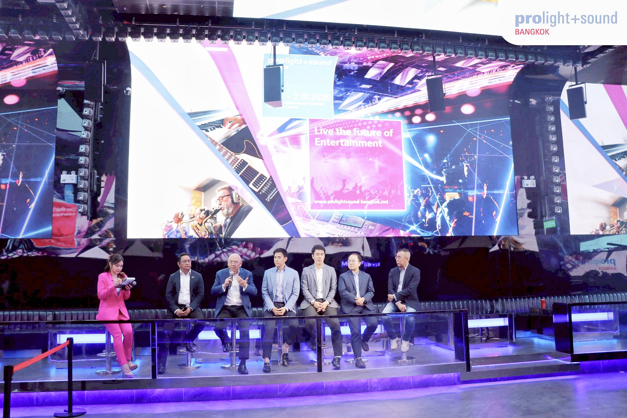 บรรยากาศภายในงานเริ่มต้นด้วยการสาธิตเทคโนโลยี Immersive จาก Elysium Immersive Club ที่นำเสนอประสบการณ์ด้านภาพ แสง และเสียงในรูปแบบใหม่ ก่อนเข้าสู่ช่วงกล่าวเปิดงานโดย มิสเตอร์ ริชาร์ด ลี (Mr. Richard Li) กรรมการบริหาร (Executive Director), Messe Frankfurt (HK) Ltd ซึ่งได้กล่าวถึงการขยายแบรนด์ Prolight + Sound สู่ภูมิภาคเอเชียตะวันออกเฉียงใต้ และบทบาทของกรุงเทพฯ ในฐานะประตูสู่ตลาดอาเซียน ต่อเนื่องด้วย นางสาวปนัดดา ก๋งม้า รองประธานสายงานธุรกิจ บริษัท วีเอ็นยู เอเชีย แปซิฟิค จำกัด ที่ได้กล่าวถึงวิสัยทัศน์ของงาน โดยชี้ให้เห็นถึงโอกาสของตลาดอาเซียนที่กำลังเติบโตอย่างก้าวกระโดดและบทบาทของประเทศไทยในการเป็นศูนย์กลางด้านเทคโนโลยี Professional AV และอีเวนต์ระดับภูมิภาค