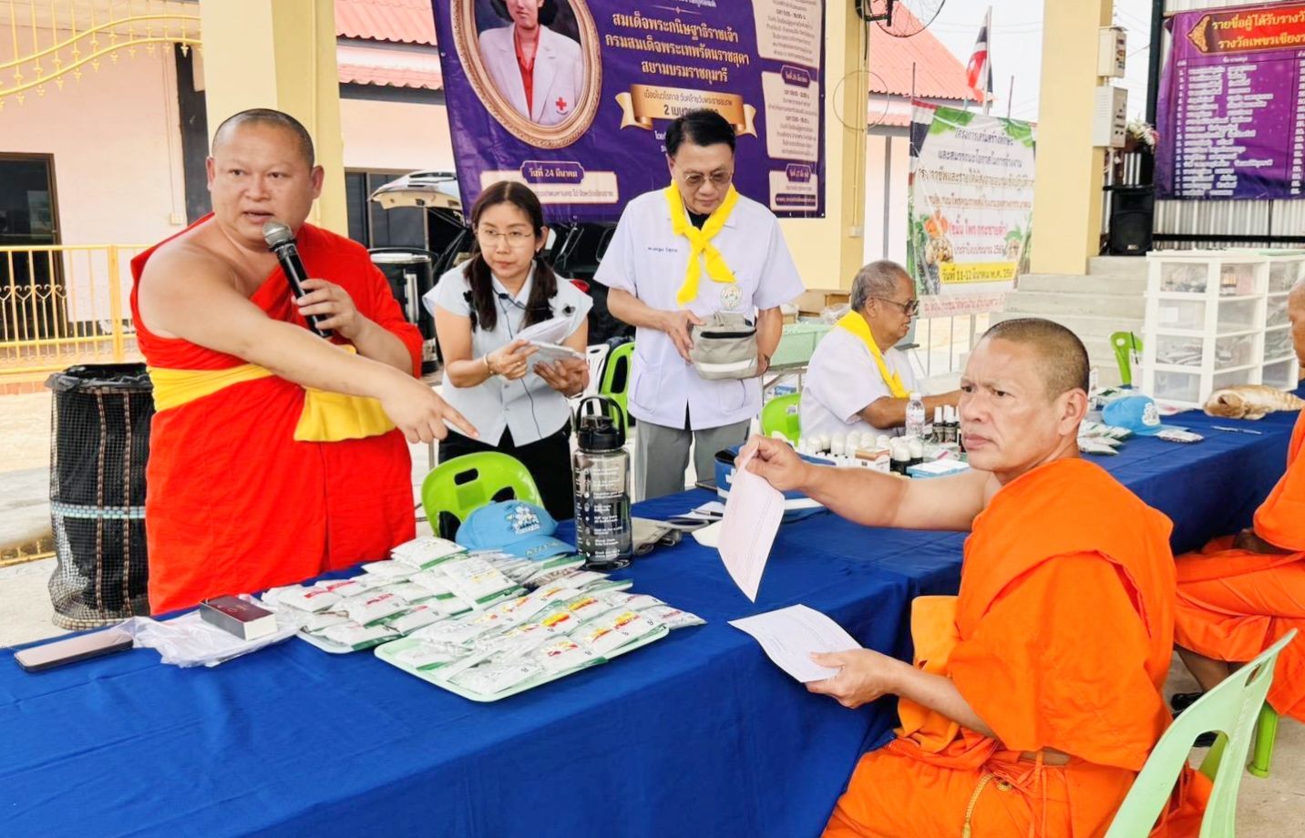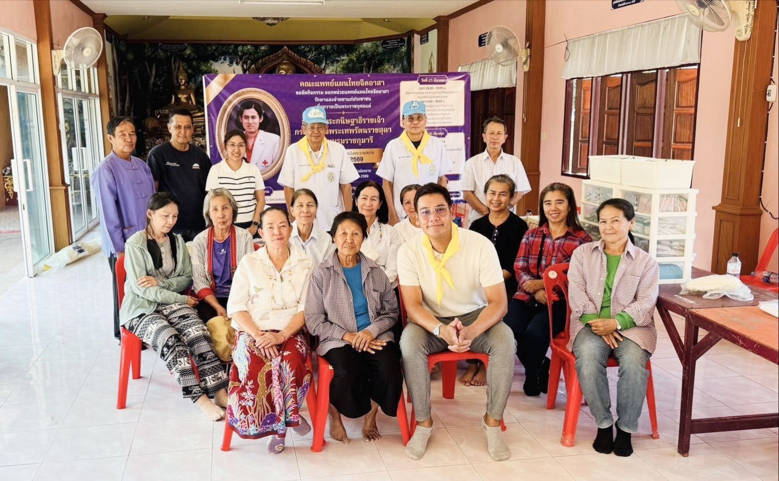 กิจกรรมในวันที่ 26 มีนาคม 2569เวลา 13.00 – 16.00 น. คณะแพทย์แผนไทยจิตอาสา ร่วมกับโรงเรียนผู้สูงอายุวัดหัวฝาย ตำบลสันกลาง อำเภอพาน โดยความเมตตาของพระครูปิยวรรณพิพัฒน์ เจ้าอาวาสวัดหัวฝาย และประธานมูลนิธิปิยวรรณพิพัฒน์เพื่อสังคม ถวายการรักษาและคิลานเภสัชแด่พระภิกษุสามเณร พร้อมทั้งให้บริการตรวจรักษาและจ่ายยาสมุนไพรแก่ประชาชน จำนวน 116 ราย