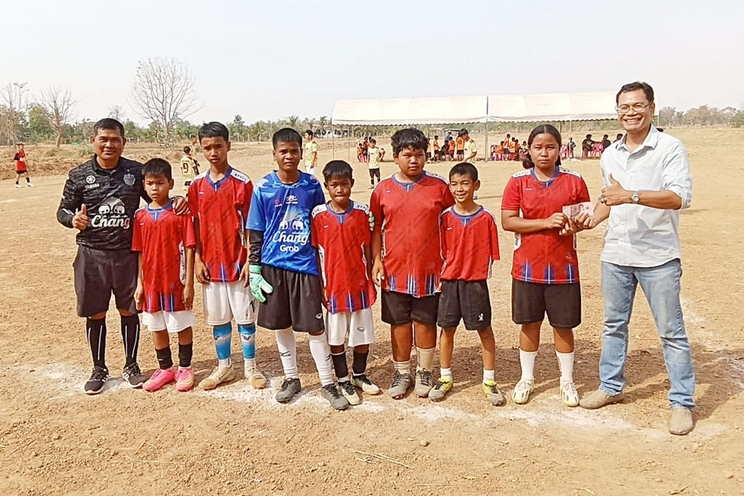 In his interview, Mr. Chart reflected on his childhood as a rural boy who grew up in hardship. His family were farmers, and he often had no shoes to wear. Playing football meant using rice fields as a playground and bamboo sticks as goalposts. There was no school in his village, so he had to travel to another village to study at Ban Nong Takhop School in Khok Toom Subdistrict, Prakhon Chai District, Buriram Province. After returning home, he had no sports field—only wide rice fields. His passion for football led him to practice there, and these memories became a powerful inspiration for organizing this event to pass on the traditional rural way of life and simple happiness to younger generations.